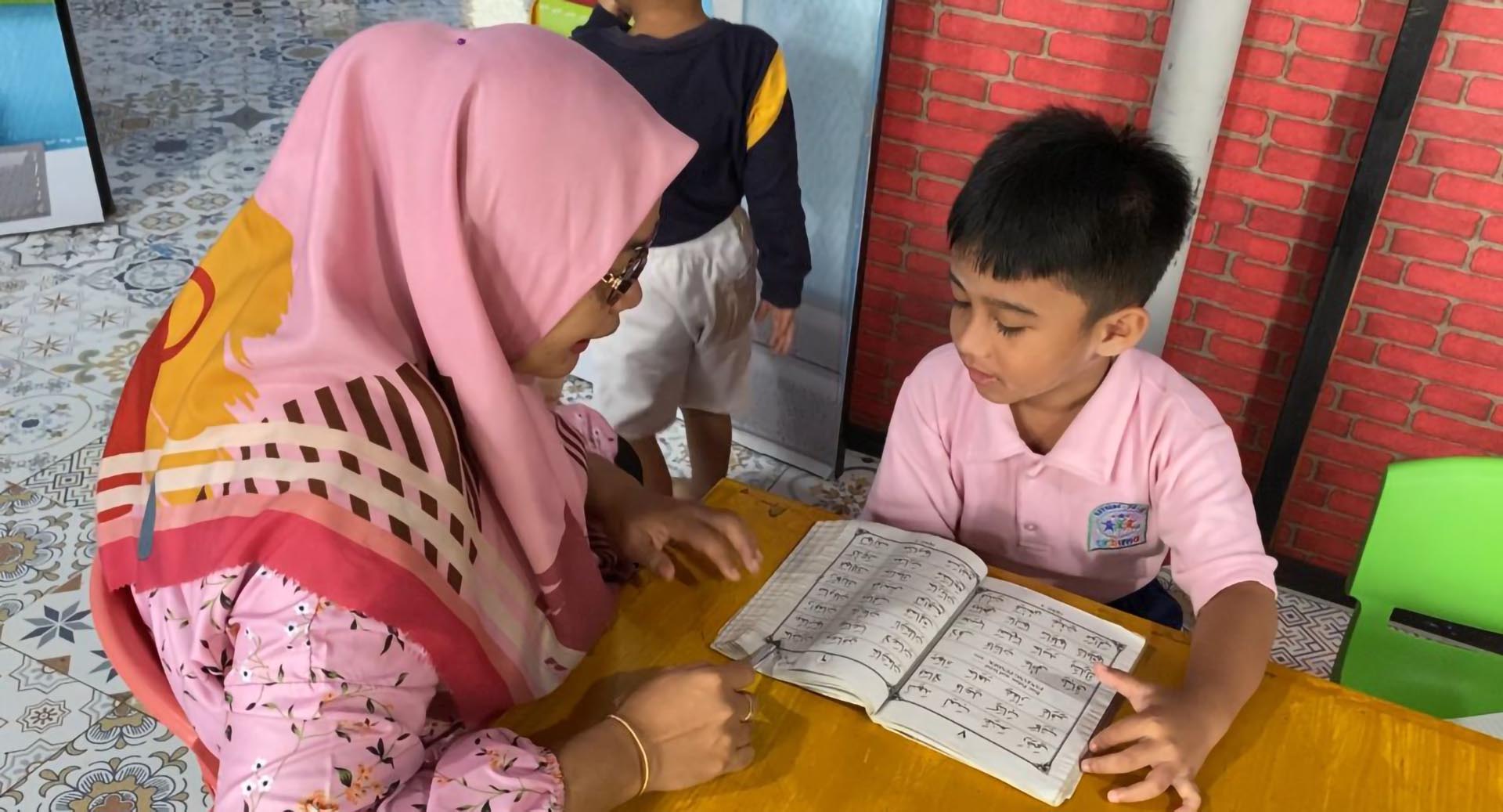 Siswa belajar sesuai dengan keyakinan agamanya seperti membaca Iqra’ dan praktik sholat.